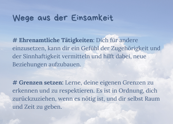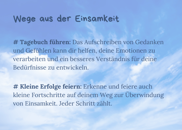 Bindungssicherheit nachzulernen ist ein tiefgreifender Prozess, der Zeit, Geduld und manchmal professionelle Hilfe erfordert. Es ist wichtig, dich selbst auf deiner Einsamkeit-überwinden-Reise zu unterstützen und freundlich zu dir zu sein. Probiere aus, was für dich passt, such dir Unterstützung und vor allem gib dir Zeit. Einsamkeit überwinden und endlich dazugehören, zu Menschen, die liebevoll mit sich selbst und dir umgehen – aus eigener Erfahrung kann ich dir sagen: Es ist eine Reise, die sich lohnt.